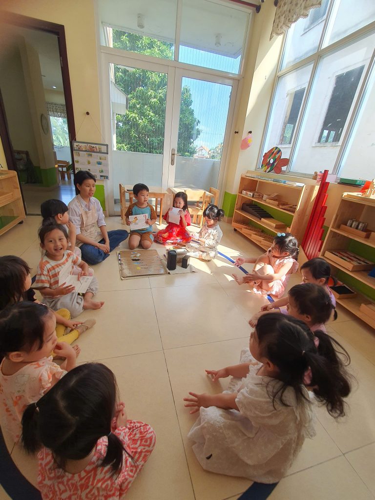 Bé từ 3 tuổi sẻ học lớp FULL MOON theo chương trình Montessori, gồm 4 lĩnh vực lớn: thực hành cuộc sống, cảm quan, ngôn ngữ và toán. Các bài học trong 4 lĩnh vực cũng cung cấp cho bé các nội dung về văn hoá, nghệ thuật (mỹ thuật, âm nhạc và thủ công).